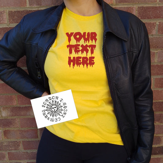 Personalised Custom Printed Dripping Font T-Shirt - Retro Horror Film, Halloween, Various Colours