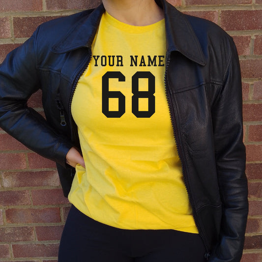 Custom Print Name And Number T-Shirt - Retro College Style, Personalised Varsity Top, Various Colours