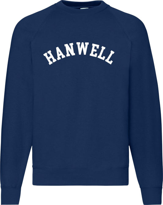 Hanwell Sweatshirt - London Souvenir, Retro Ivy League, Custom Print Add Your Area Name, Various Colours