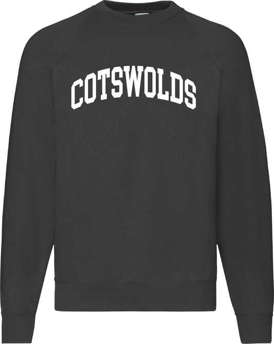 Cotswolds Sweatshirt - Retro College Varsity, Gloucestershire Souvenir, Custom Print Available/ Add Your Area Name, Various Colours
