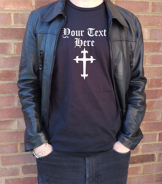 Custom Printed Gothic Cross T-Shirt - Crucifix, Rocker, S-XXL