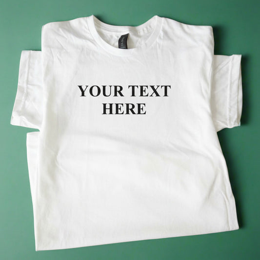 Custom Print T-Shirt - Personalised Simple Times Roman Font, Various Colours