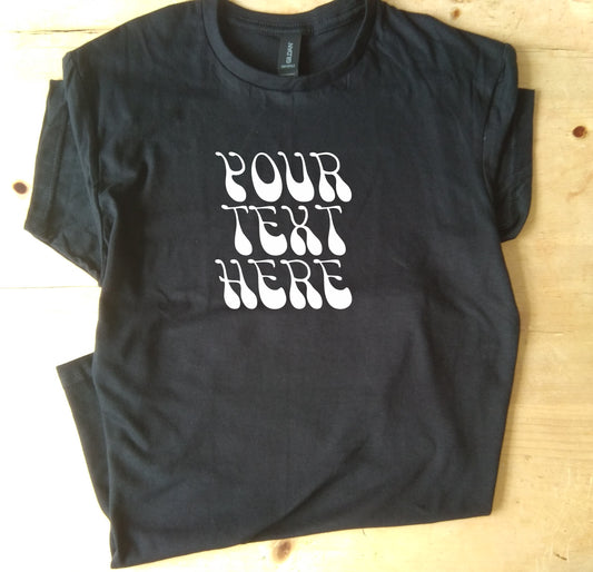 Custom Printed T-Shirt - Retro 70s Style, Personalised, Various Colours
