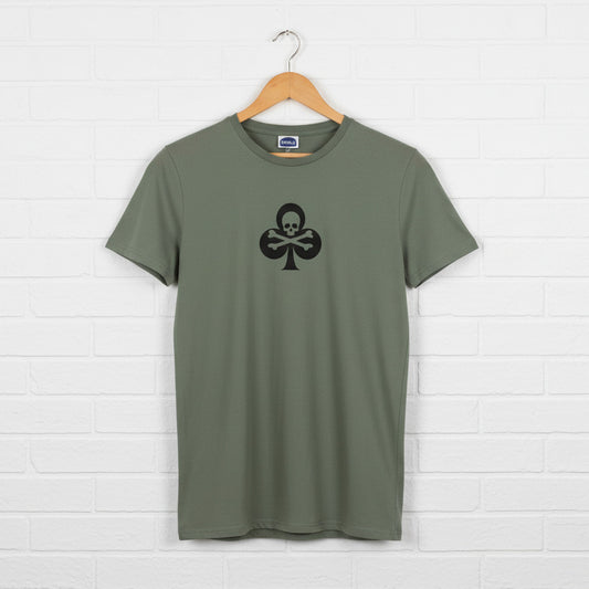 Clubs Skull Organic Cotton Slim Fit T-Shirt - Cards, Clover, Punk Rock, Various Colours